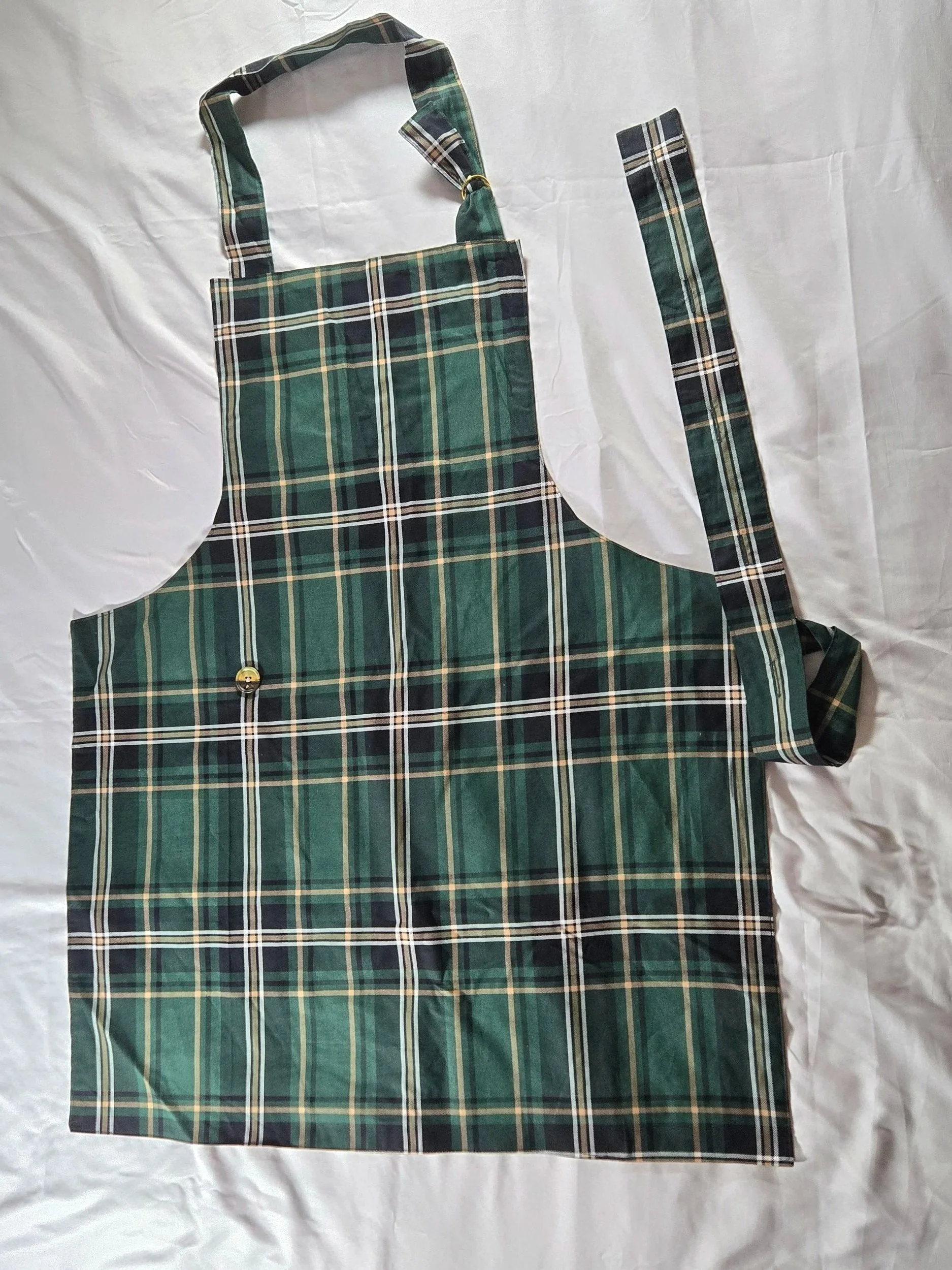 All of our aprons are 100% cotton. Adult Aprons measure approximately 36”Lx30”W, plus 60 total inches of strap length.