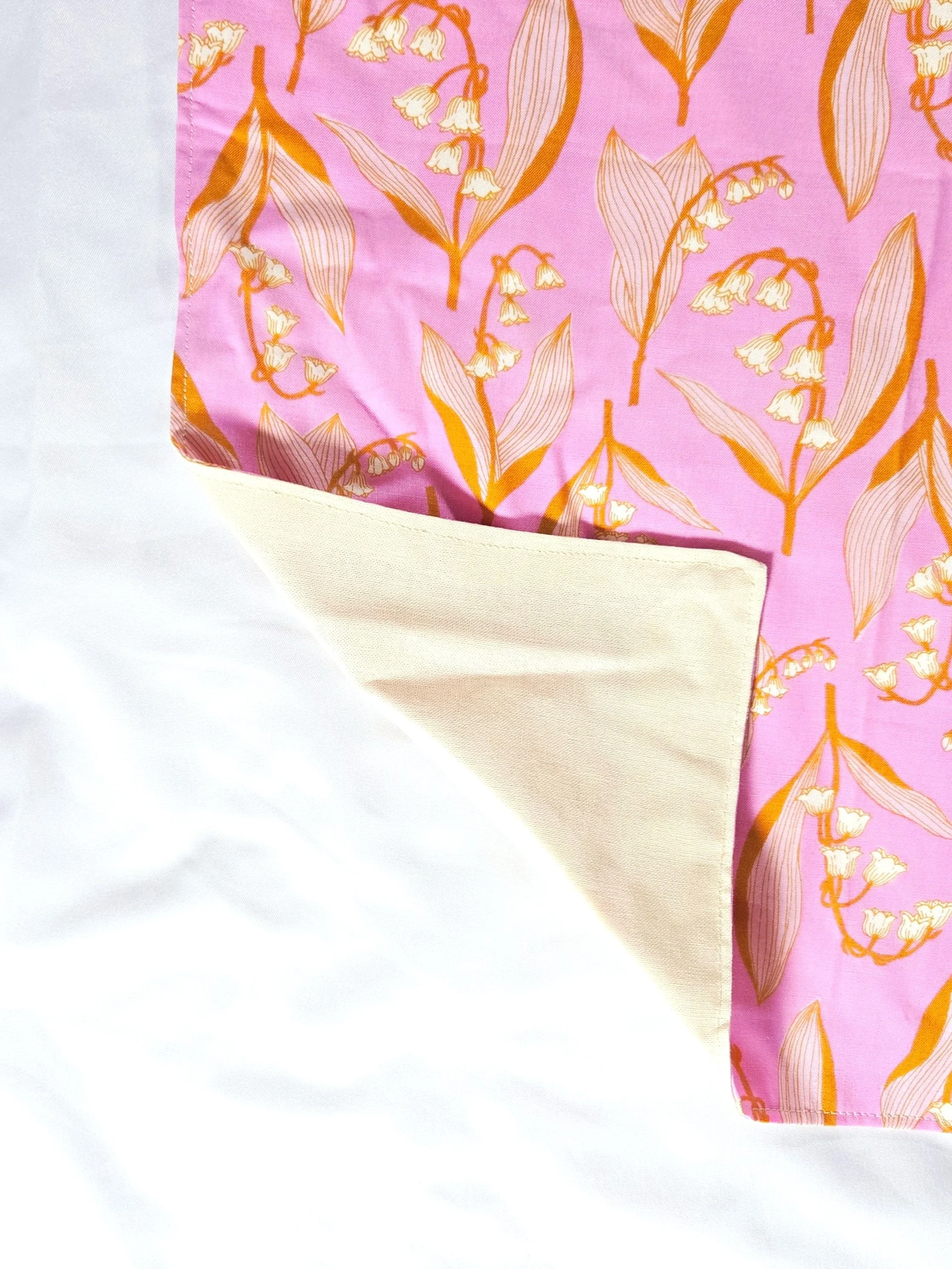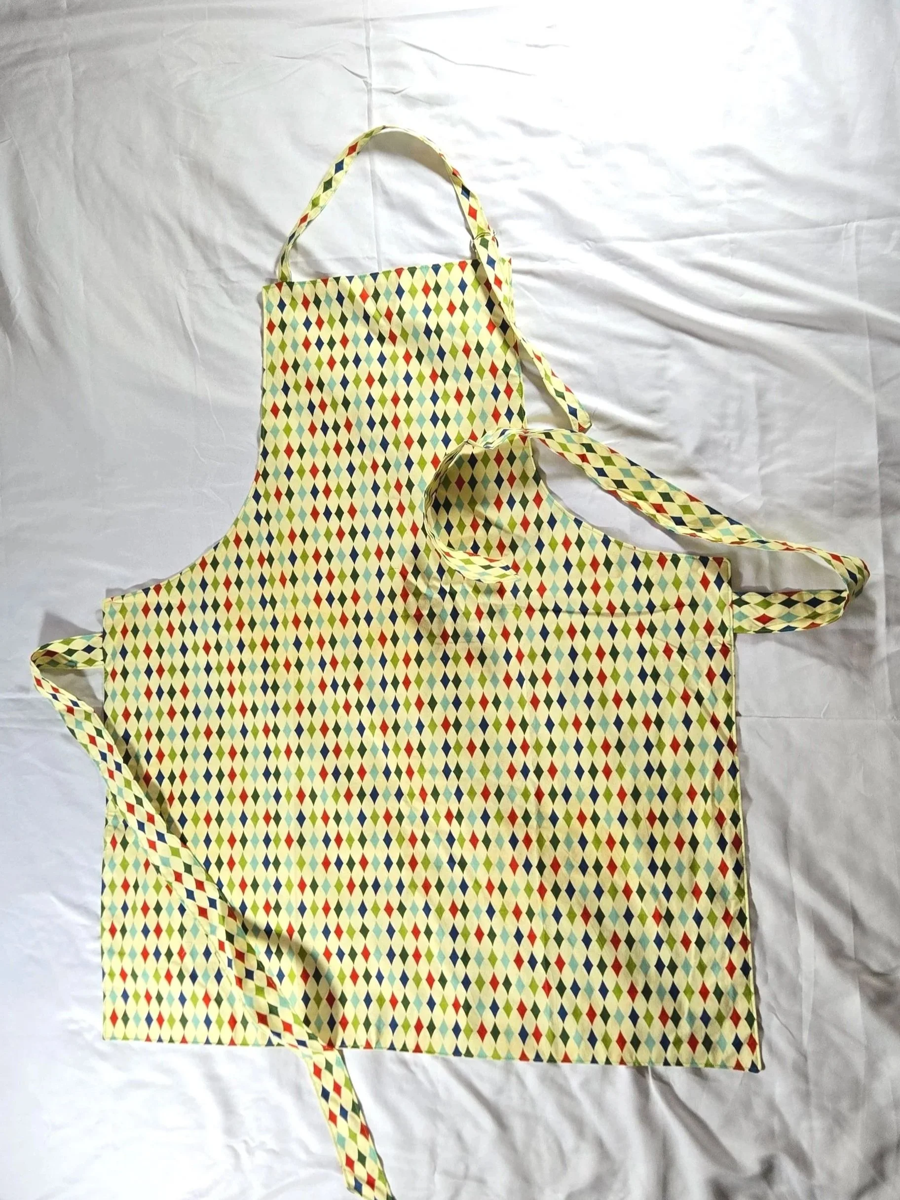 Our Starry Petals apron is perfect for cooking, gardening, or just getting messy! It features a simple line drawing pattern of white, lime, and yellow flowers in starbursts. Our adult aprons are size-inclusive and adjustable, with a d-ring neck strap and tie waist straps. White lining and pale topstitching make the apron durable enough to last years, even with frequent washing.